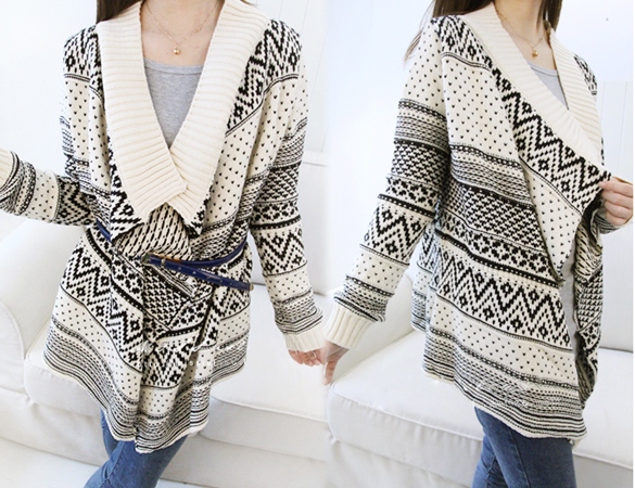 Super cute winter black and ivory printed cardigan sweater. One size first S/M