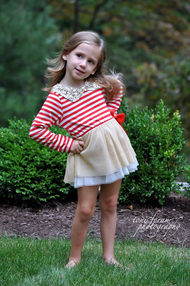Red or Navy Stripe Gold Tutu with gold sequin peter pan collar. Pair with cute ivory leggings! Totally adorable!