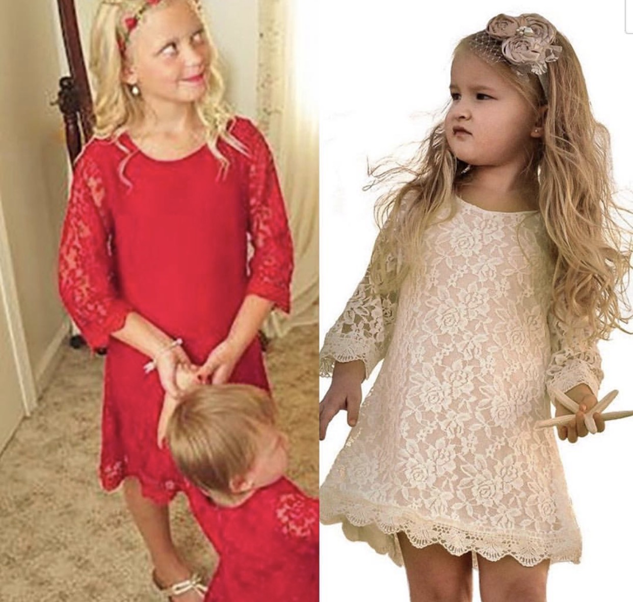 Classic and oh so pretty holiday red or cream lace dress. Comment with color selection in notes at check out