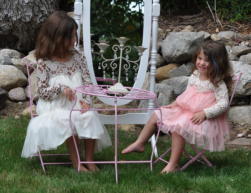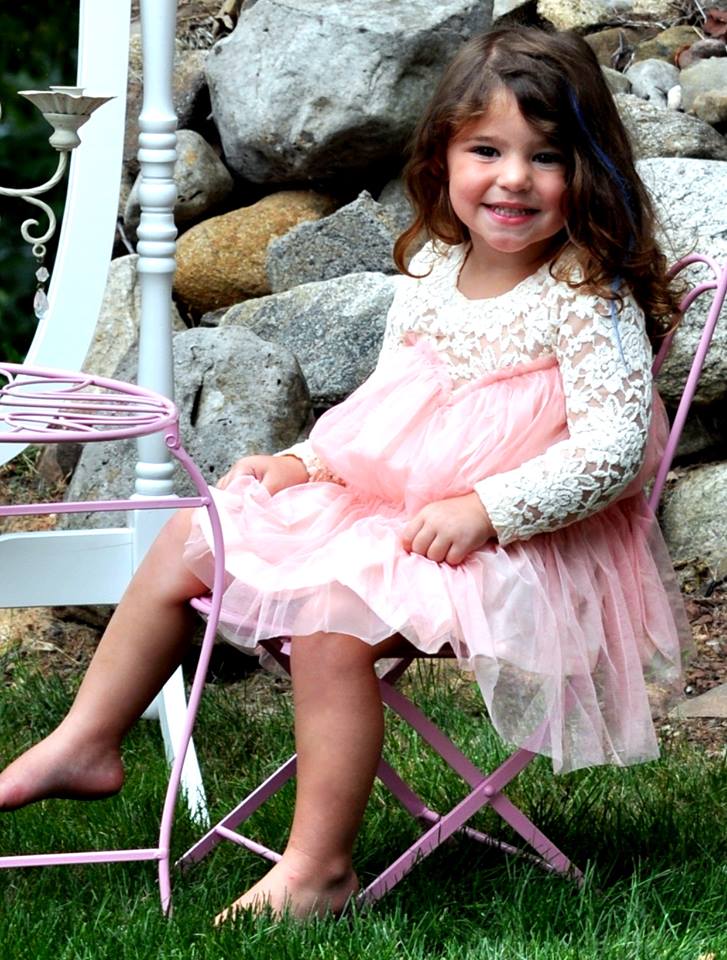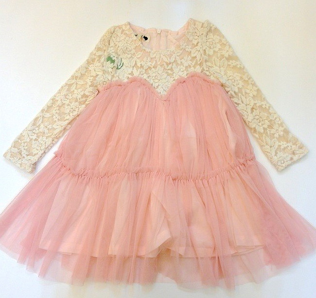 Vintage inspired pink lace dress! Very pretty. The lace trim comes down a few inches past the neckline. Long tiered tutu. DRESS IS STUNNING!!! Can be also dressed down with jeggings and cute boots
