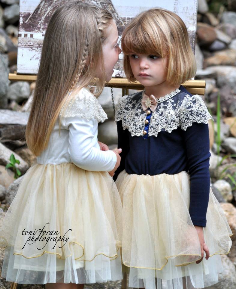 Vintage inspired navy or ivory bodice with gold tutu dress. With Gold crocheted color. So elegant!! Our ivory with lace embroidered leggings look fabulous with this dress!