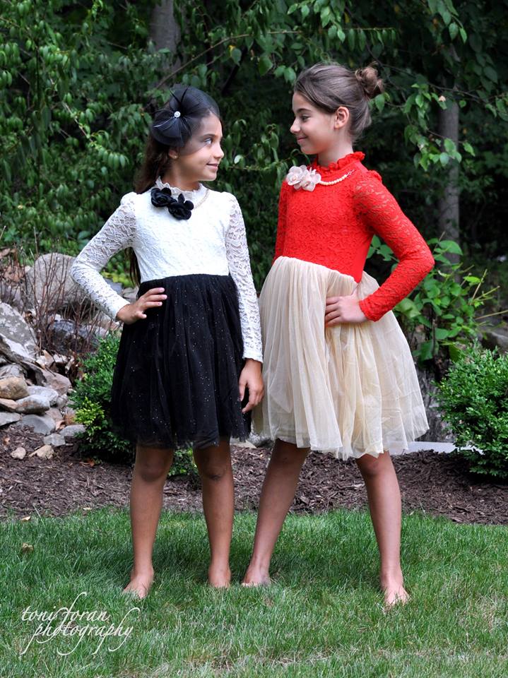 Beautiful Red Holiday Dress. Crocheted bodice with beaded floral accent necklace attached. Gold sparkly tutu